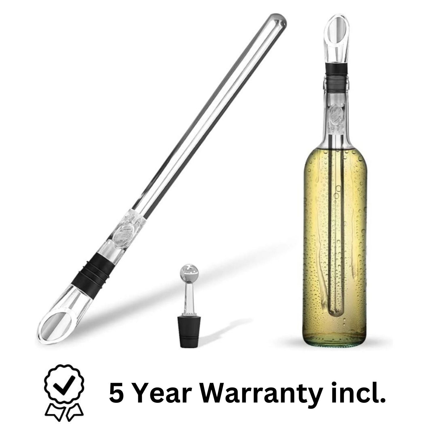 The VinoAmigo© wine chiller stick brings your wine to the ideal serving temperature in just 10-15 minutes and keeps it cool for over 2 hours.