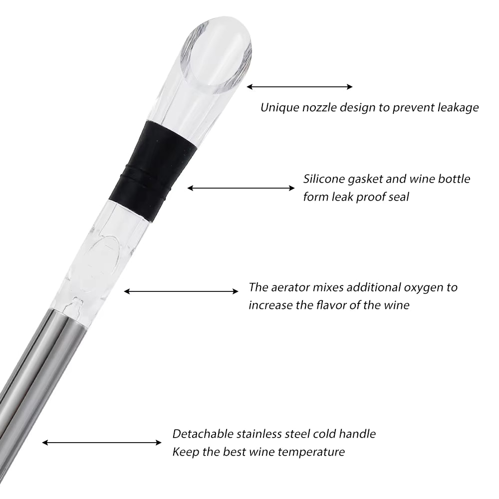 VinoAmigo combines three essentials in one sleek design: cooling, aerating, and pouring.
